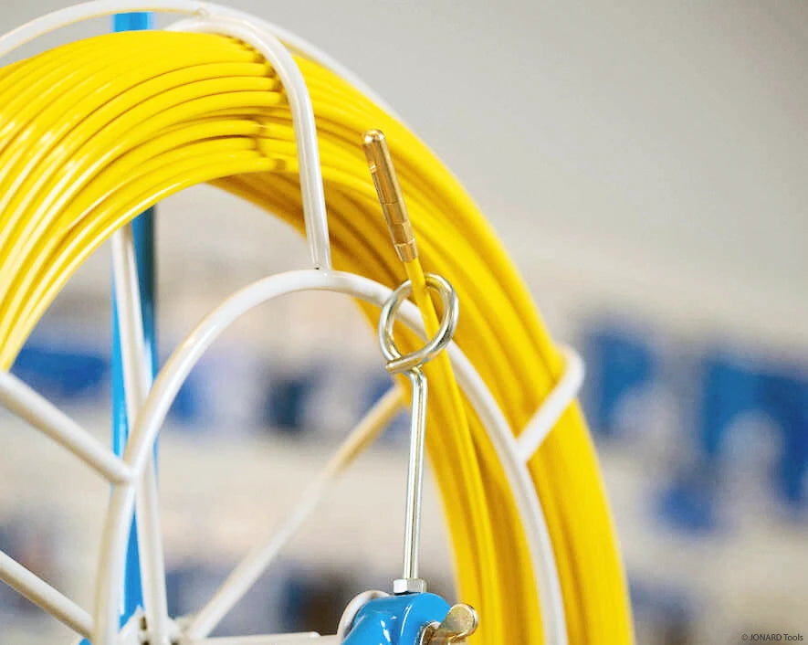 Die ROD-3316 Kabeleinziehspule von Jonard Tools eignet sich perfekt für die Verlegung von Kabeln oder Drähten durch oder entlang von Leerrohren sowie für die Verlegung von Hausanschlussleitungen vom Verteilerkasten zum Gebäude.